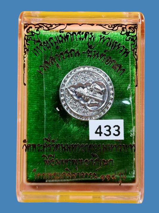 (เนื้อปีกเครื่องบิน-แจกในพิธี)เลข 433 เหรียญเม็ดกระดุม หัวแหวน เวสสุวรรณ ยันต์นะเศรษฐี หลังยันต์อกเลาพระพุทธชินราช : สาริกาคู่ |