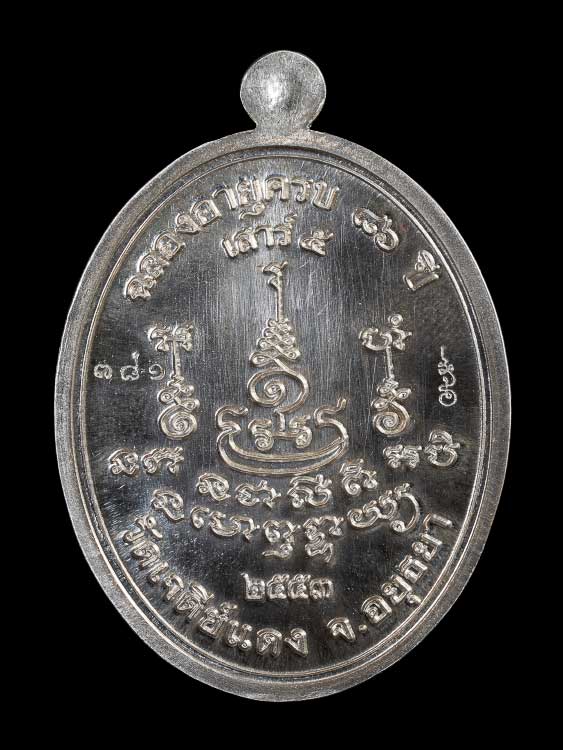 เหรียญหลวงปู่จำลอง วัดเจดีย์แดง จ.อยุธยา รุ่นเสาร์ 5 ฉลองอาย ุ 86 ปี พ.ศ.2553 เนื้อเงิน ตอก 2โค๊ต ตอกเลข กล่องเดิม