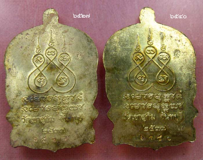 เหรียญนั่งพาน เนื้อทองเหลือง หลวงพ่อสมชาย วัดเขาสุกิม ตอกโค้ด ส และโค้ด จำนวน 2 เหรียญ หมายเลข ๖๕๒๗ และ ๖๕๔๐ ได้มาจากคนในพื้นที่