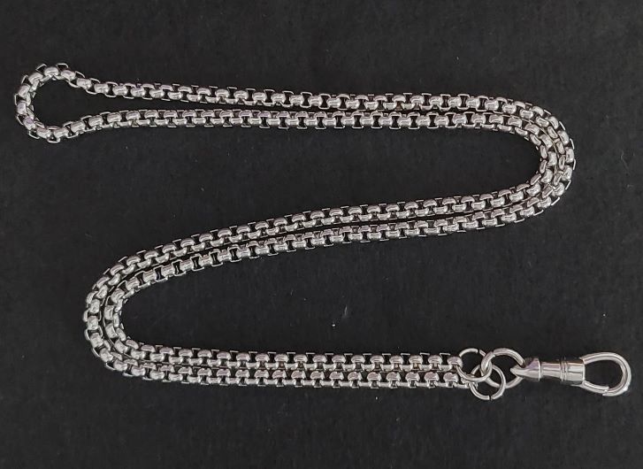 สร้อยสแตนเลส ลายผ่าหวาย ยาว 26 นื้ว พร้อมสปริงก้ามปูสแตนเลสหมุนได้ |