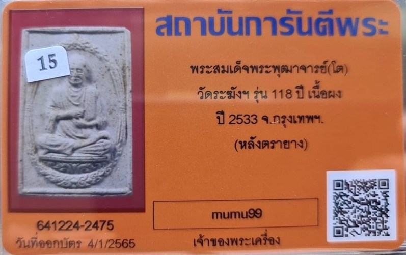 ## สมเด็จวัดระฆัง อนุสรณ์ 118ปี พ.ศ.2533 พิมพ์รูปเหมือน "พระสวยเดิมไม่ผ่านการใช้.หลังปั้มตรายาง...พร้อมบัตรรับรอง.""รับประกันแท้ตลอดฃีพและแท้ตามมาตรฐานสากล....... อนาคตดี ถูกๆเลยครับ.... ราคายังไม่แรง |