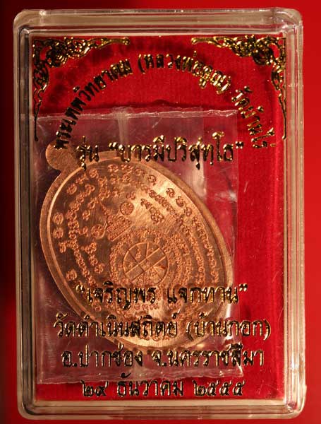 พระสวย.. เหรียญหลวงพ่อคูณ เจริญพรแจกทาน (เจริญพร2) เนื้อทองแดง No.1373 กล่องเดิม |