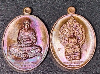 เหรียญหลวงปู่บัว รุ่นมงคลมหาลาภ เหรียญนั่่งโต๊ะเต็มองค์+เหรียญพระนากปรก 2 เหรียญ เนื้อทองแดง ปี 2559 ราคาวัดใจ