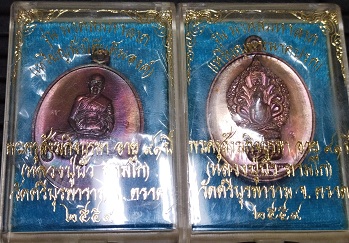 เหรียญหลวงปู่บัว รุ่นมงคลมหาลาภ เหรียญนั่่งโต๊ะเต็มองค์เลข1613+เหรียญพระนากปรกเลข 2575 2 เหรียญ เนื้อทองแดง ปี 2559 ราคาวัดใจ