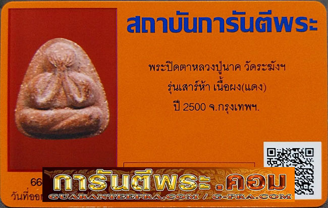 ชื่อพระเครื่อง ปิดตาหลวงปู่นาค วัดระฆังฯ รุ่นเสาร์ห้า เนื้อผง(แดง)ปี2500