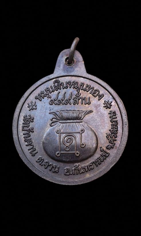 เหรียญหมุนเงินหมุนทอง หลวงปู่หมุน วัดบ้านจาน เนื้อทองแดง บล็อกหนา ประคำ 19 เม็ด นิยมสุด ปี 2542 (แดง 7,500)