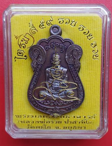 เหรียญไตรมาส ๕๙ รวย รวย รวย หลวงพ่อรวย วัดตะโก อยุธยา ปี 2559 เนื้อทองแดง
