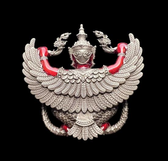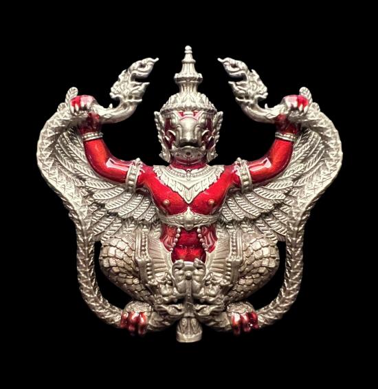 พญาครุฑ รุ่นแรก มหาปราบ ๔ ทิศ หลวงปู่พวง วัดเทพนรสิงห์ (วัดโคกตาสิงห์) จ.บุรีรัมย์ ปี 2565 เนื้ออัลปาก้าลงยาแดง หมายเลข 169 สวยๆ พร้อมกล่องเดิม |