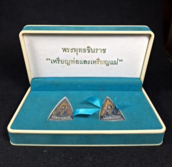 พระพุทธชินราช เหรียญ พ่อ และ เหรียญ แม่ กล่องเดิม |