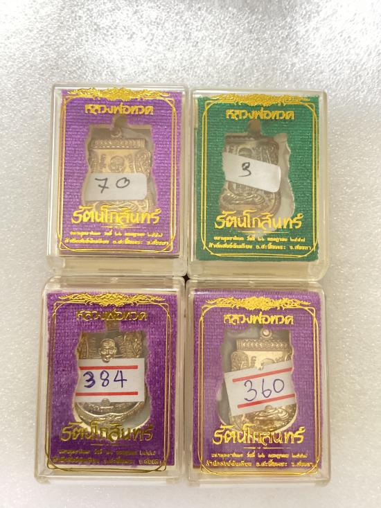 เหรียญเสมาหลวงพ่อทวด รุ่น รัตนโกสินทร์ พิมพ์เลื่อนทวีคูณ สำนักสงฆ์วัดต้นเลียบ จ.สงขลา ปี 2557 เนื้ออัลปาก้า หมายเลข 70 ,384,360 เนื้อชนวนบ้านช่างหล่อ หมายเลข 3 กล่องเดิม ( 4 เหรียญ )