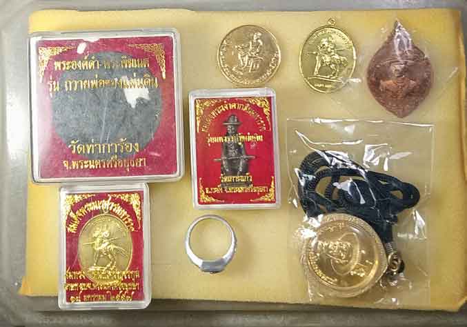 สมเด็จพระนเรศวรมหาราช 2 องค์ + พระเจ้าตากสินมหาราช 5 องค์ + แหวนเนื้ออลูมิเนียม พระเจ้าตากสิน วัดเกาะแก้ว จ.อยุธยา