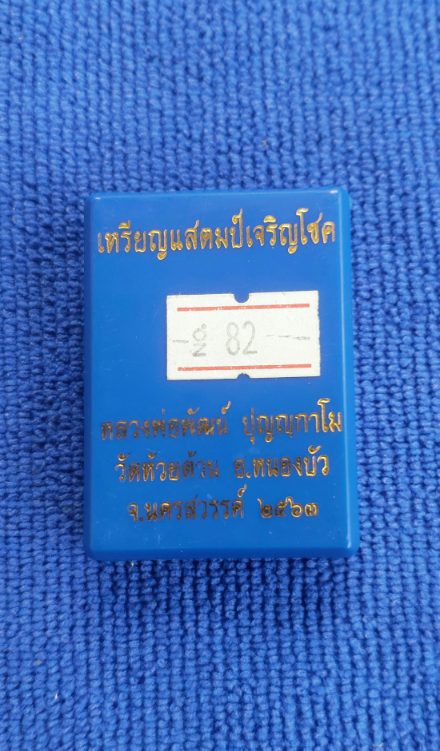 เหรียญแสตมป์เจริญโชค หลวงพ่อพัฒน์ เนื้อเงินลงยา เลข 82 เคาะเดียว