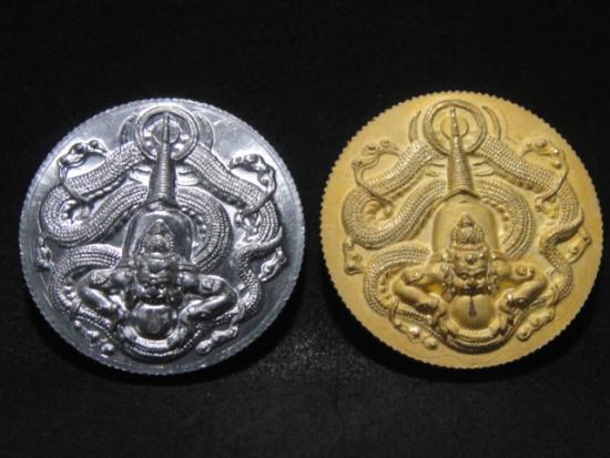 วัดใจเคาะเดียว.......100.......เหรียญองค์พ่อจตุคาม รุ่นรวยไม่เลิก ขนาด 3.2 ซม. ขอบสตางค์ สวย กะไหล่ทอง + ตะกั่ว รวม 2 เหรียญ |