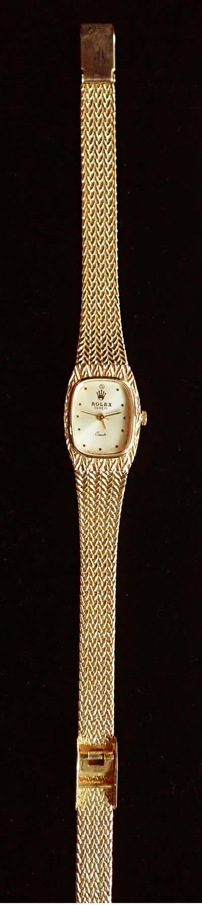 ลงใหม่ครับ..ผู้ประมูลได้ โดนไป 6 FEEDBACK ติ !!!! นาฬิกาสุภาพสตรี ยี่ห้อ "ROLEX" งานเก๊เก่า ระบบ QUARTZ สายโลหะถักลาย ชุบทอง วินเทจ สวย...สมบูรณ์ ใช้งานได้ตามปกติ |