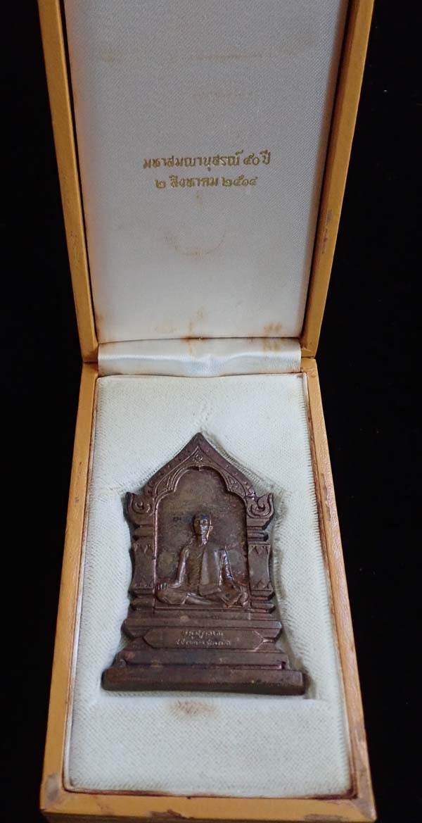 เหรียญรูปเหมือนขนาดบูชา (สูง 7 ซม.) สมเด็จพระมหาสมณเจ้า กรมพระยาวชิรญาณวโรรส "มหาสมณานุสรณ์ 50 ปี" วัดบวรนิเวศ ปี 2514 บล๊อกกองกษาปณ์ สวยมาก กล่องเดิมๆ |