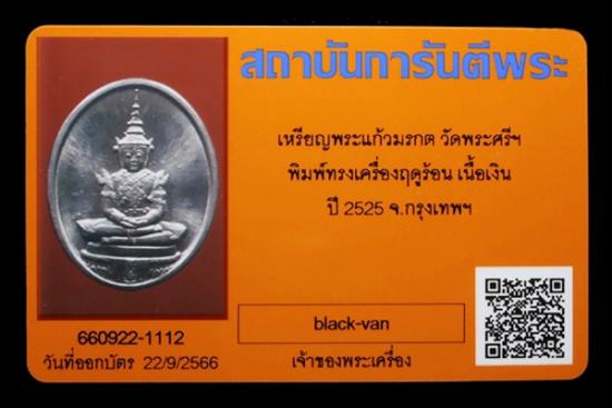 เหรียญพระแก้วมรกต ทรงเครื่องฤดูร้อน วัดพระศรีรัตนศาสดาราม เนื้อเงิน ปี2525 พร้อมบัตรรับรอง G-pra ครับ
