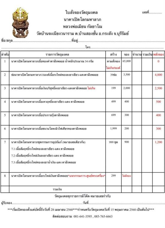 ยกชุด เลข295 ชุดกรรมการอุปถัมภ์ (จอง900 หลังจอง1,200) นาคาเปิดโลกมหาลาภ หลวงพ่อเมียน กัณยาโณ วัดบ้านจะเนียง จ.บุรีรัมย์