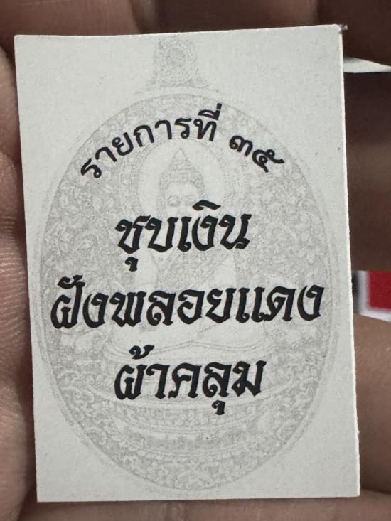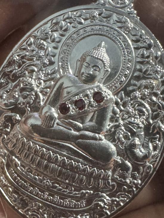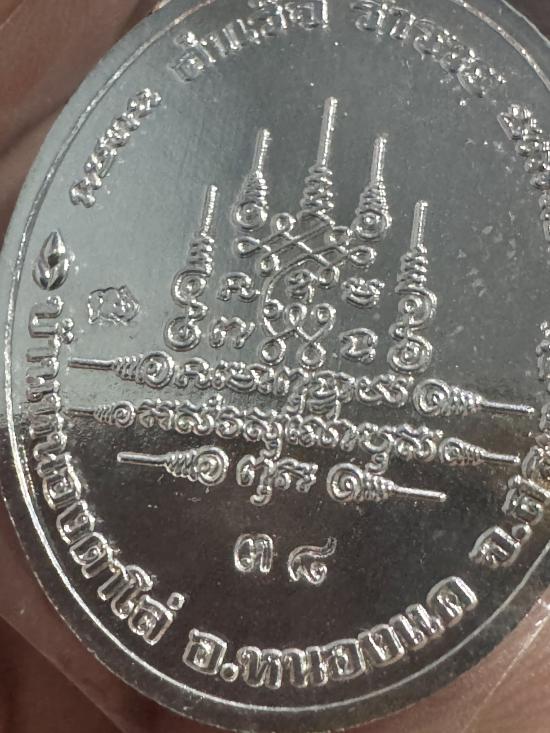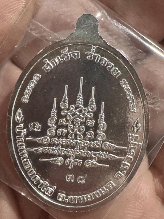 เหรียญหลวงพ่อสำเร็จ ศักดิ์สิทธิ์ บ้านหนองตาโล่ สระบุรี เหรียญชุบเงินฝังพลอยแดงผ้าคลุม ตอกโค๊ต ตอกหมายเลข 38 |