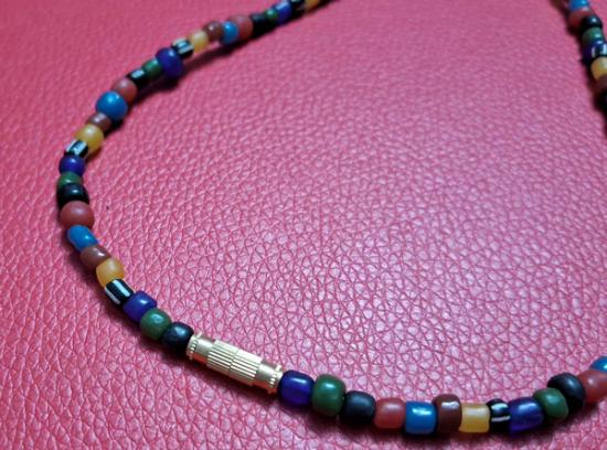 สร้อยคอลูกปัดทราวดี ลูกปัดโบราณสวยๆ ความยาว 24 นิ้ว สวมหัวได้หรือหมุนเกลียวทองเหลืองถอดออกก็ได้ สามารถห้อยพระได้ 1 องค์ (กท.06) |
