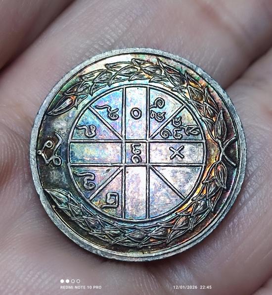 เหรียญรูปเหมือนกลม (มงคลลาภ) หลวงพ่อเกษม เขมโก .. เนื้อเงิน ปี 2535 สภาพสวย ผิวออกรุ้ง .. ตอกโค๊ต ..