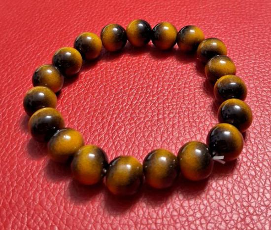 สร้อยประคำข้อมือหินตาเสือ (Tiger's Eye) ขนาด 10 มิล ร้อยด้วยเอ็นยืด ขนาดฟรีไซด์ (กท.10)