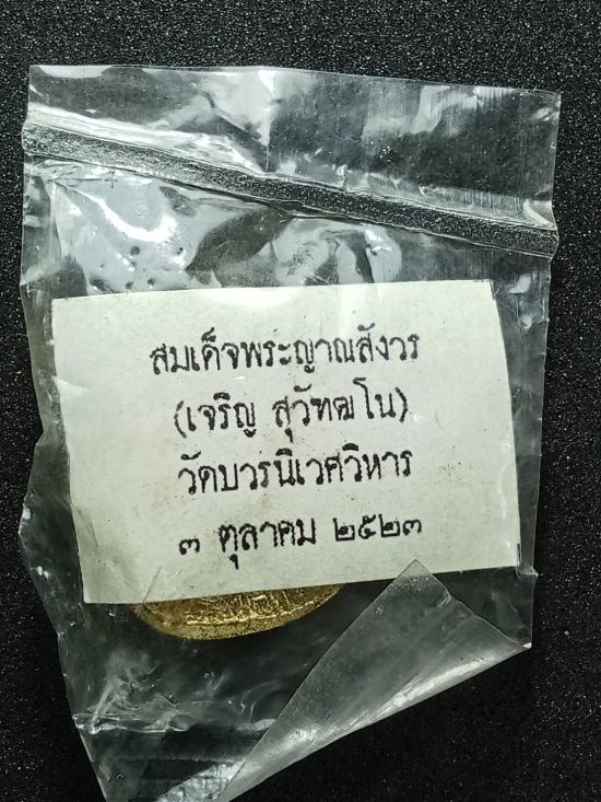 เคาะเดียว ในซองซีลเดิมพร้อมใบฝอย พระปิดตายันต์ดวงเล็ก เนื้อผงธูปกัมมัฏฐานผสมผงพุทธคุณปิดทองทั้งองค์ สมเด็จพระญาณสังวร(เจริญ สุวัฑฒโน ปธ.๙) วัดบวรนิเวศวิหาร ๒-๓ ตุลาคม ๒๕๒๓ |