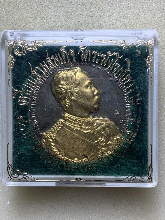 เหรียญ ร.5 รุ่น 90ปี รพ.สมเด็จ ณ ศรีราชา ปี35 เนื้อ 3K หน้าทอง พร้อมกล่อง เคาะเดียวครับ