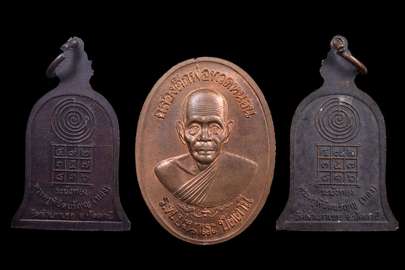 เหรียญระฆังทอง เนื้อทองแดง และ เหรียญรุ่น3 เนื้อทองแดง หลังทวดหนอน หลวงพ่อโต๊ะหัก หลวงพ่อทอง วัดสำเภาเชย |