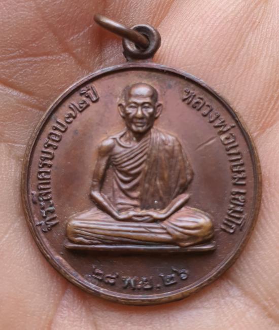 เหรียญหลวงพ่อเกษม เขมโก ที่ระลึกครบรอบ 72 ปี สร้าง 28 พย 26 สมทบทุนสร้างโรงพยาบาลสงฆ์ นครลำปาง เนื้อทองแดง สวย ผิวเดิมๆ เ