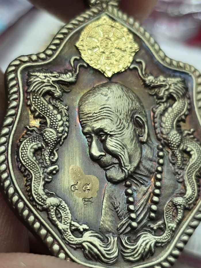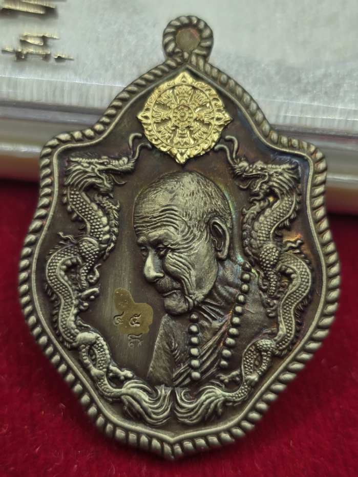เหรียญมังกรคู่ทรัพย์เทวา หลวงปู่เจียง วัดโนนเรือ เนื้ออัลปาก้าซาติน หมึกเจิมทอง ธรรมจักรทองคําแท้ เลข45 จัดสร้างเพียง 99 องค์ ออกวัด999บาท |