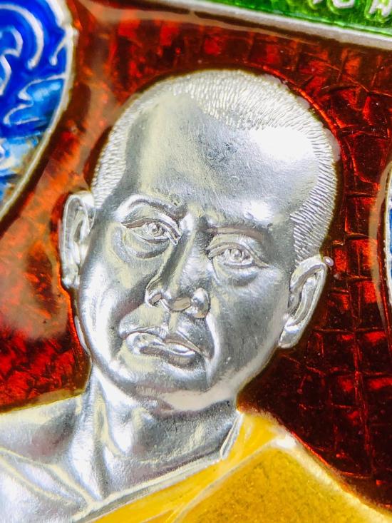 ออกวัด 2,500 เหรียญเสมาหน้าแซยิด หูเชื่อมโบราณ เจริญพร ลาภมาไม่ขาด หลวงพ่ออิฏฐ์ วัดจุฬามณี เนื้อเงินลงยาแดง ลงยาจีวร