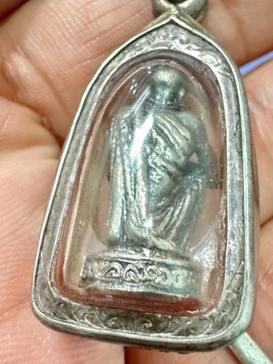 รูปหล่อเหมือน หลวงพ่อคูณ วัดบ้านไร่ นครราชสีมา ปี 2536 เนื้อเงิน พิมพ์นั่งยองเอกลักษณ์ เลี่ยมจับขอบเงินเก่า