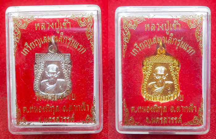 2 องค์***หลวงปู่เช้า วัดห้วยลำไย ต.หนองพิกุล อ.ตากฟ้า จ.นครสวรรค์ เนื้อกะไหล่เงิน + เนื้อกะไหล่ทอง+ เหรียญเสมาเล็ก รุ่นแรก ปี 2555 |