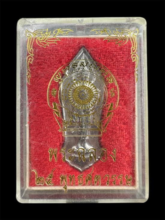 วัดใจ** พระพุทธ 25 ศตวรรษ ปี 2500 เนื้อชินตะกั่ว พิมพ์ไม่มีเข็ม ((มีกล่อง))
