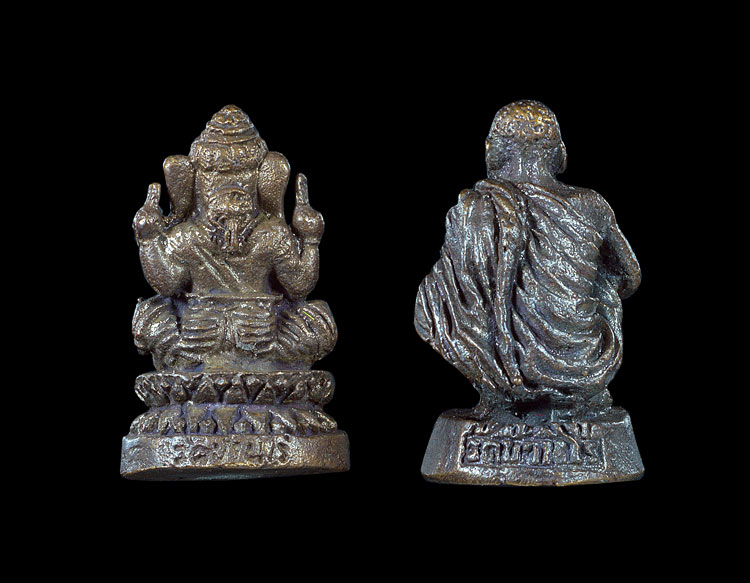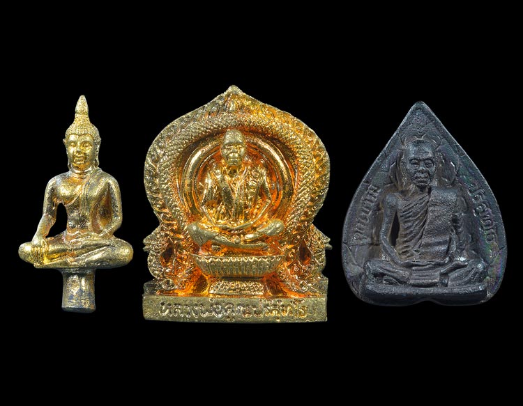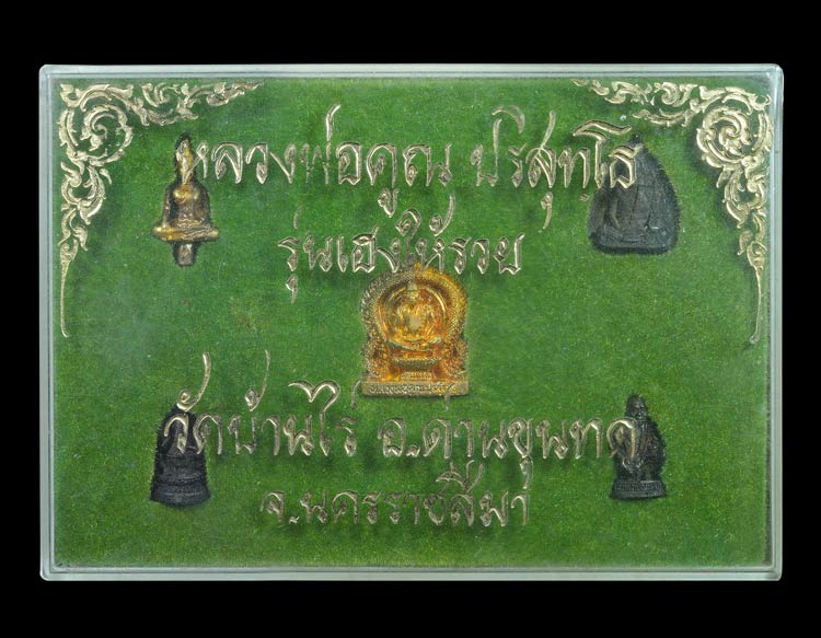 พระชุด 5 องค์ ( เนื้อโลหะ ) พระยอดธง,เหรียญหล่อนั่งพาน,เหรียญหล่อใบโพธิ์,พระพิฆเรศ,รูปหล่อแจกแบงค์ พ.ศ.2537 ( กล่องเดิม ) ** 1 **
