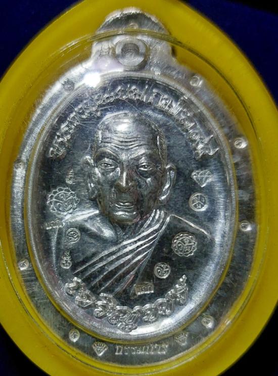 เหรียญเจริญพรเมตตามหานิยม หลวงปู่นิยม กมโล เนื้อเงินไม่ตัดปีก ๙รอบ แจกกรรมการ วัดแจ้งนอก ปี 2555