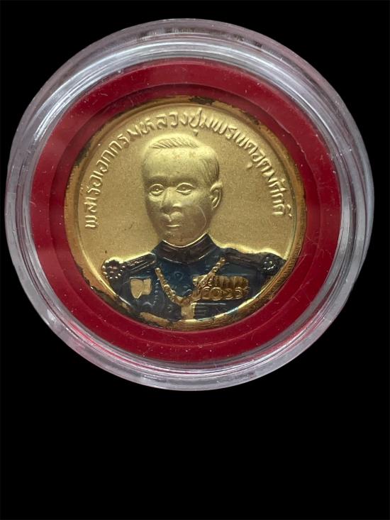 เหรียญพระบาทสมเด็จพระจุลจอมเกล้าเจ้าอยู่หัว หลังพลเรือเอกกรม หลวงชุมพรเขตอุดมศักดิ์ เนื้อโลหะกะไหล่ทอง ลงยา พระสวยผิวเดิม ๆครับ |
