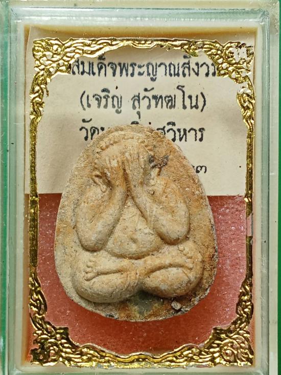 เคาะเดียว มีกล่องเดิมพร้อมใบฝอย พระปิดตายันต์ดวงเล็ก ตะกรุดเงิน เนื้อผงทูโทน ด้านหน้าเนื้อผงเกสรด้านหลังเนื้อผงใบลาน สมเด็จพระญาณสังวร(เจริญ สุวัฑฒโน ปธ.๙) วัดบวรนิเวศวิหาร ๒-๓ ตุลาคม ๒๕๒๓ |