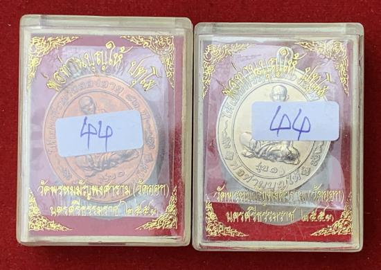 เหรียญห่วงเชื่อมรุ่นแรก ที่รฤกฉลองอายุ 82 ปี พ่อท่านบุญให้ วัดพรหมมัญพงศาราม จ.นครศรีธรรมราช เนื้ออัลปาก้า +ทองแดง หมายเลข ๔๔ |