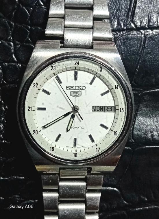 วินเทจทรงเท่ๆ..Seiko 5 หน้าขาว Automatic 7009 467R ขนาด 37 mm.โดยประมาณ วันที่ปลี่ยนเร็วได้ สายยาวๆ เดินปกติพร้อมใช้ พิจารณาก่อนเคาะรายละเอียดตามภาพครับ