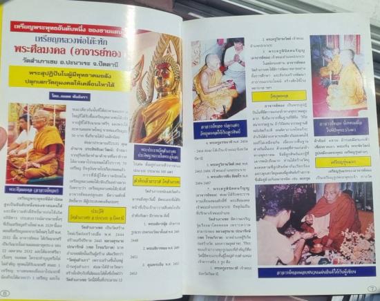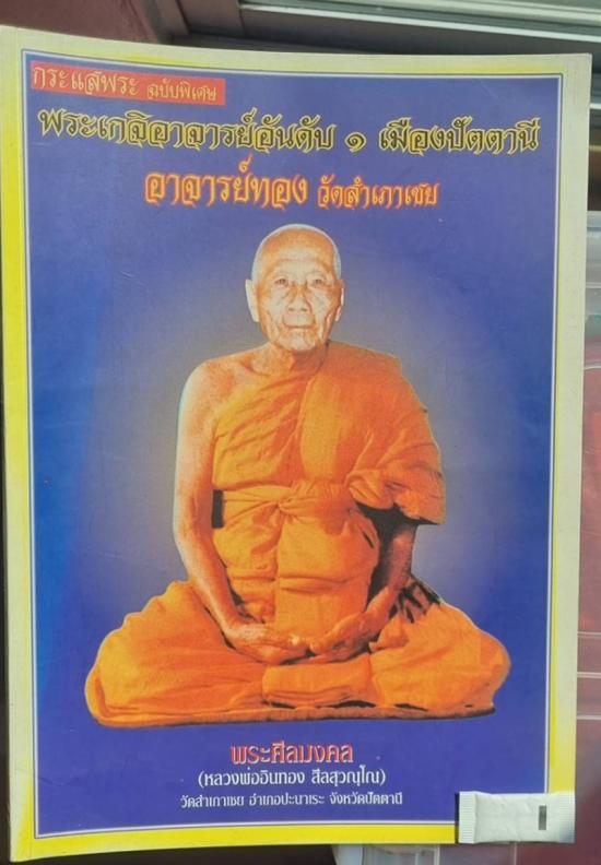 หนังสือ กระแสพระ ฉบับพิเศษ พระเกจิอาจารย์อันดับ1เมืองปัตตานี อาจารย์ทอง วัดสำเภาเชย หลวงพ่ออินทอง สีลสุวณโณ หรือที่รู้จักในนาม อาจารย์ทอง แห่งวัดสำเภาเชย อำเภอปะนะเระ จังหวัดปัตตานี ท่านเป็นหนึ่งในพระเกจิอาจารย์ผู้ทรงวิชาอาคมที่มีชื่อเสียงเป็นที่รู้จักและเคารพนับถือของเหล่าบรรดาพุทธศาสนิกชนทั่วไป ได้ทำคุณประโยชน์ให้แก่พระพุทธศาสนาและสาะารณูปการแก่สังคมมากมาย นอกจากนี้ท่านยังเป็นผู้ทรงพุทธาคม ดังจะเห็นได้จากพระเครื่องวัตถุมงคลต่างๆที่ท่านได้อธิษฐานจิตปลุกเสกมีพุทธานุภาพเป้นที่ประจักษ์แก่บรรดาศิษยานุศิษย์ และผู้บูชา ด้วยเหตุนี้จีงได้มีการรวบรวมประวัติวัดสำเภาเชย ภาพพระเครื่องและวัตถุมงคลของท่านมาจัดทำเป็นรูปเล่ม นำเสนอพระเครื่อง และวัตถุมงคลของท่านที่่ได้รับความนิยมมาจัดพิมพ์ เพื่อเผยแพร่กิตติคุณของอาจารย์ทองพระเกจิอารย์อักดับหนึ่งของเมืองปัตตานี ความหา ๙๐ หน้ากระดาษอย่างดีภาพสีทั้งเล่ม |