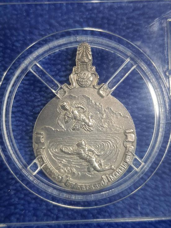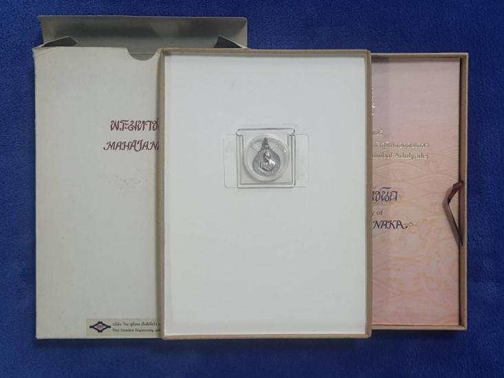เหรียญพระมหาชนก เนื้อเงินพิมพ์เล็ก ปี 2542 พร้อมหนังสือกล่อง สภาพสวยเดิม