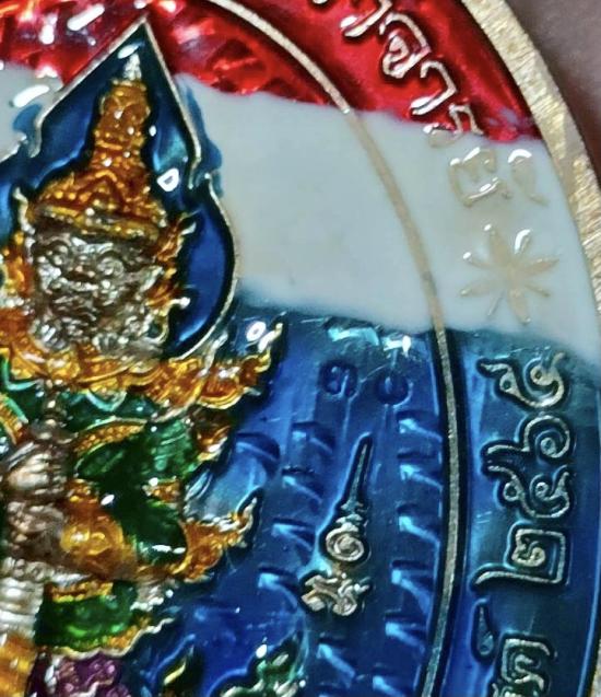 เหรียญหลวงพ่อพัฒน์ หลังท้าวเวสสุวรรณ วัดห้วยด้วน จ.นครสวรรค์ เนื้อเงินลงยาลายธงชาติ ตอกโค๊ต ตอกหมายเลข 30