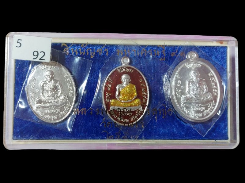 เหรียญหลววพ่อคูณ รุ่น"ชินบัญชรมหาเศรษฐี ๙๑" ชุดกรรมการเนื้อเงิน 3 เหรียญ หมายเลข ๙๒ เคาะเดียว