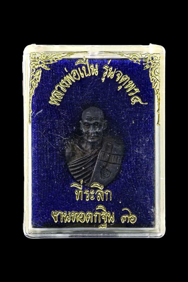 รูปหล่อครึ่งองค์ หลวงพ่อเปิ่น วัดบางพระ ปี2536 เนื้อนวะ พร้อมกล่อง