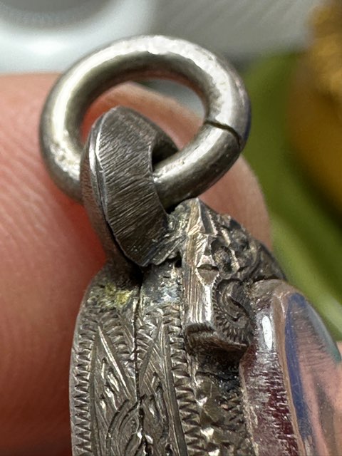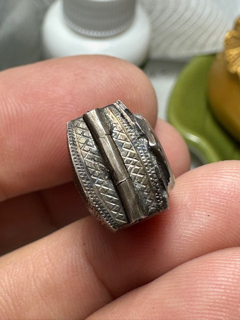ตลับเงินแท้งานแกะมือสวยๆคมๆใส่ปิดตาหรือรูปหล่อองค์จิ๋วๆได้ครับ ขนาดหน้าจอตามรูป ด้านข้างกว้าสุด9มิลล์ วัดใจเคาะเดียว200-ไปเลยครับ