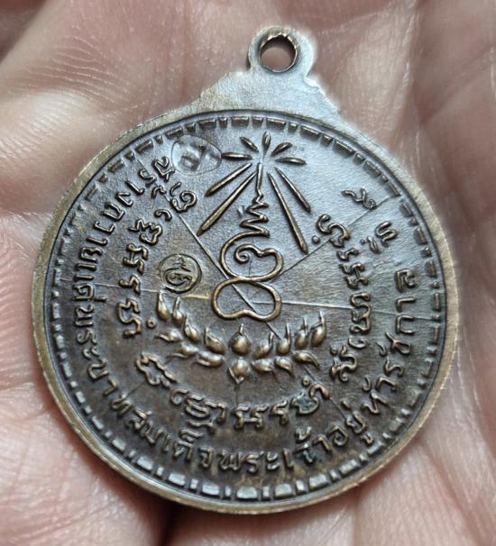 เหรียญหลวงปู่แหวน วัดดอยแม่ปั๋ง จ.เชียงใหม่ (รุ่นทูลเกล้า) เนื้อทองแดงรมดำ ปี 2517