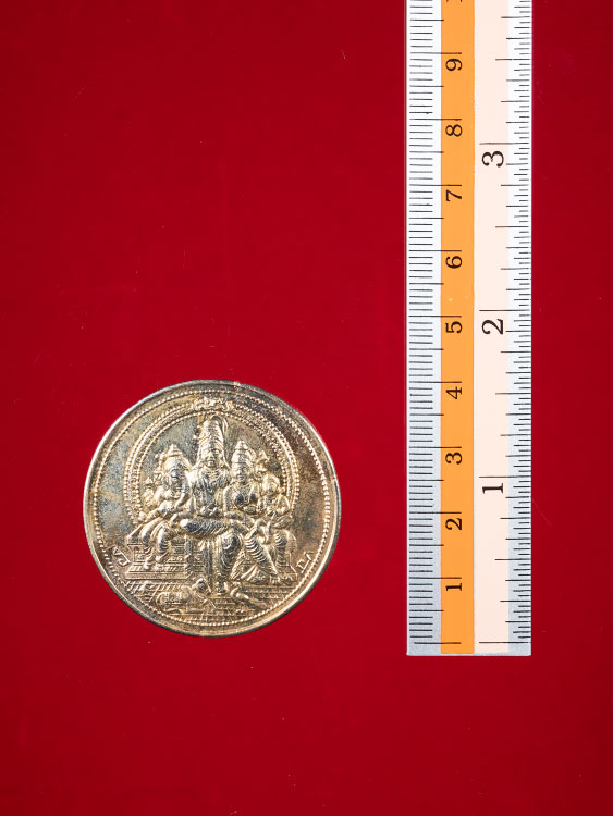 เหรียญองค์เทพ เนื้อโลหะ ขนาดประมาณ 1.5 นิ้ว เหรียญค่อนข้างใหญ่ครับ ไม่ทราบที่