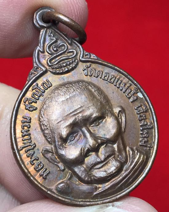 เหรียญหลวงปู่แหวน หลังพระปิดตา ออกวัดเจดีย์หลวง เชียงใหม่ ปี 2520 เนื้อทองแดง