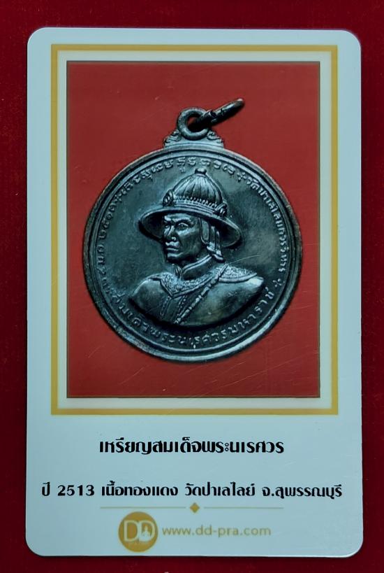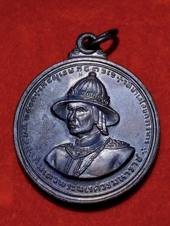 เหรียญสมเด็จพระนเรศวรมหาราช ยุทธหัตถี วัดป่าเลไลย์ ปี 2513 พิมพ์สามดาบคอซี (นิยม) |